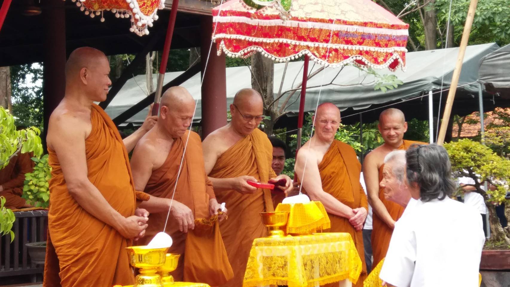 Luang Por Pasanno, Luang Por Jundee and other senior monks at a blessing ceremony