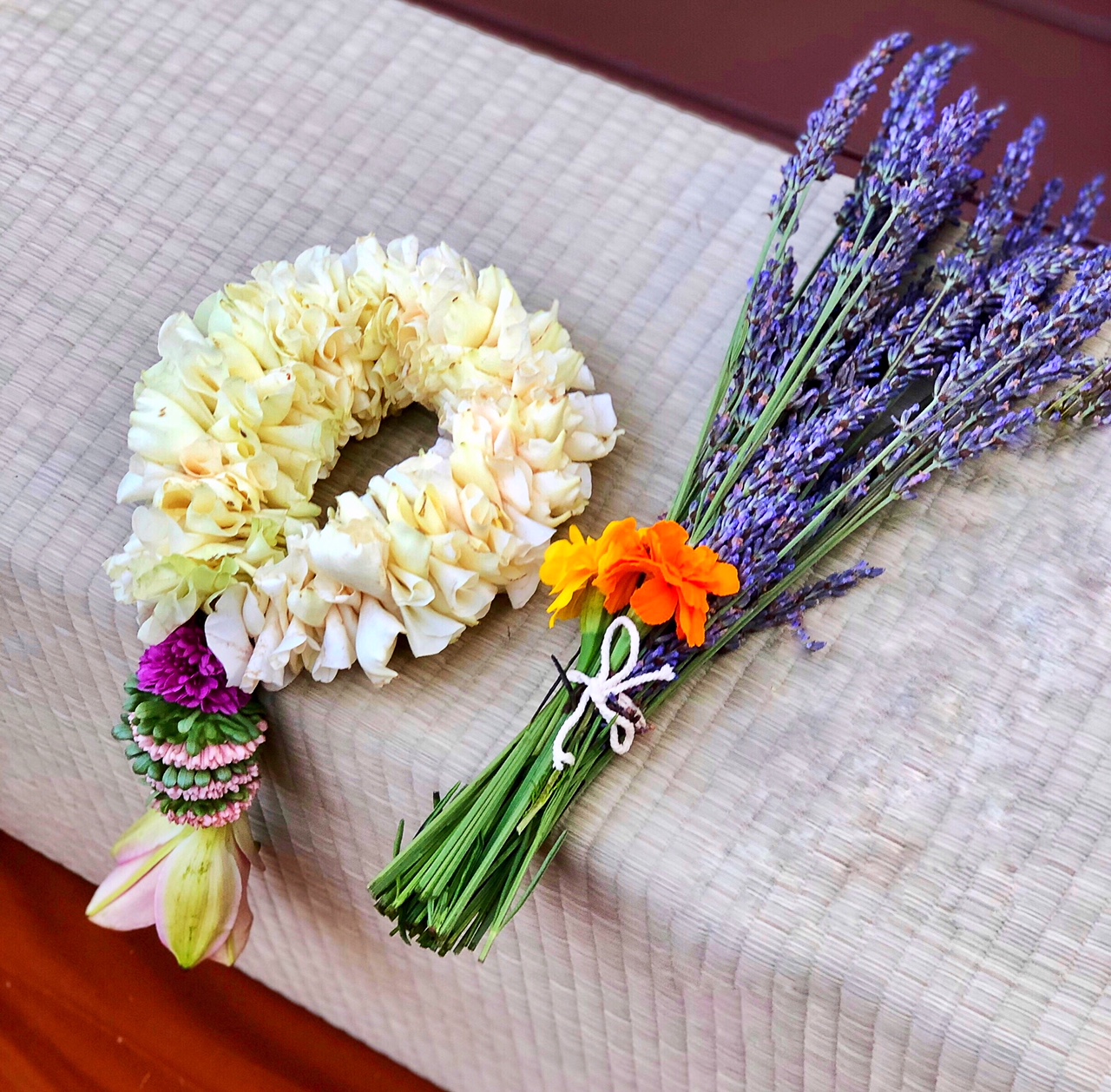 Offerings of faith prepared for the evening's circumambulation of the Buddha Image in honor of Asalha Puja