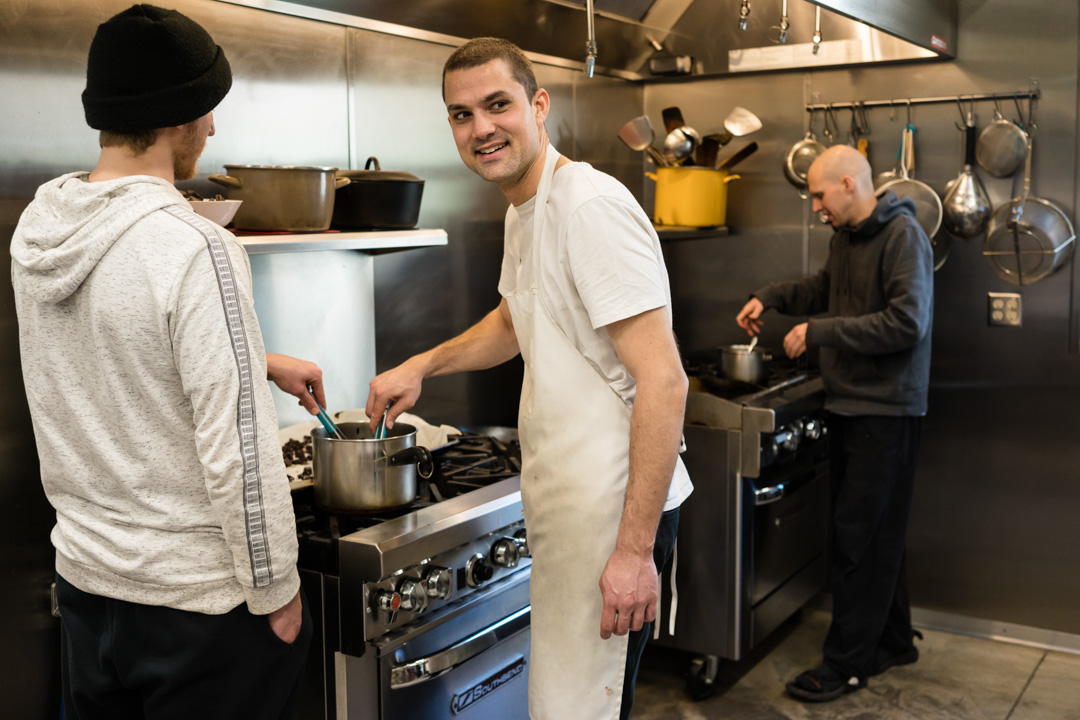 Retreat crew members cooking on the stove.