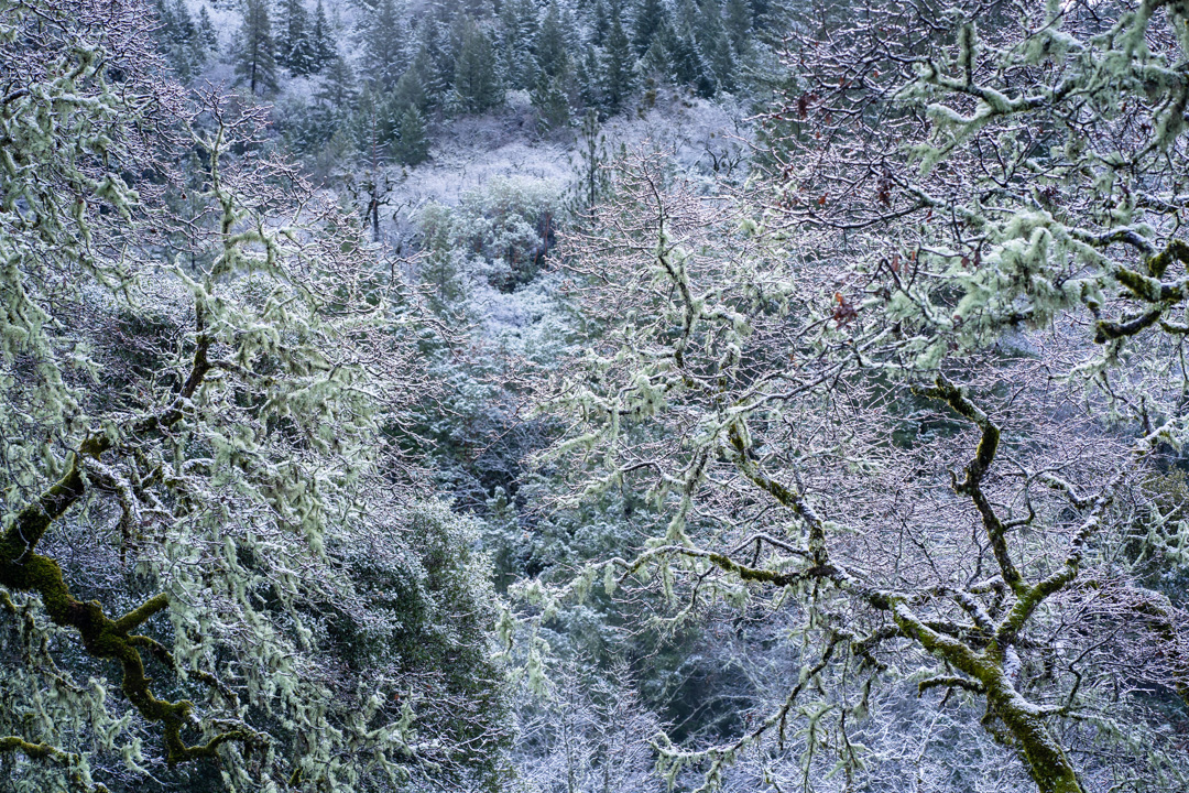 Oak trees in snow.