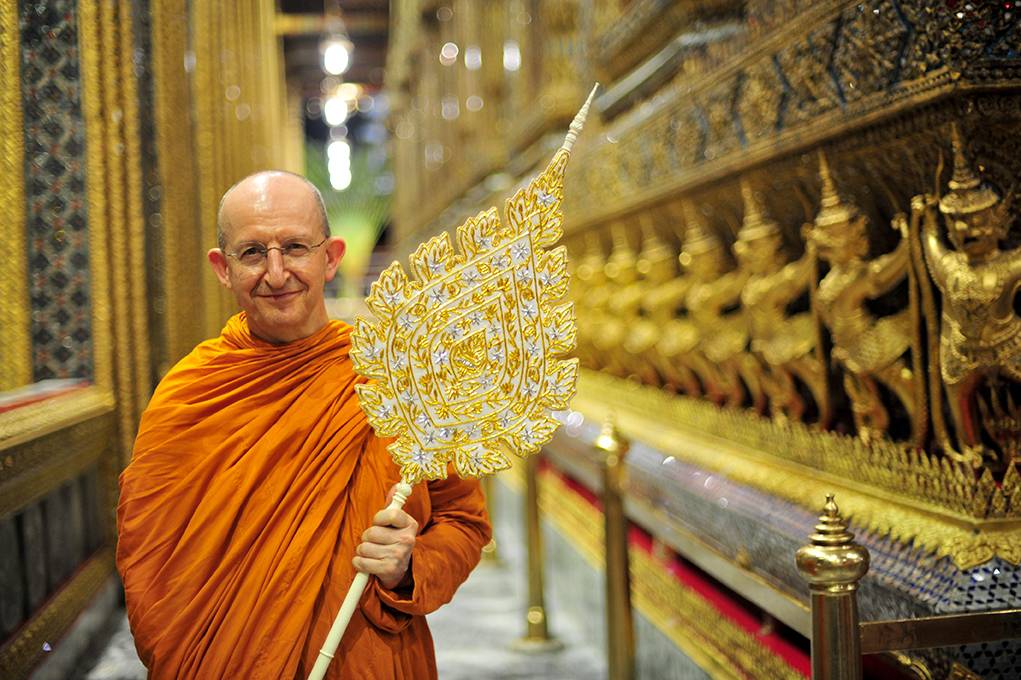 Ajahn Amaro holding his Chao Khun ceremonial fan