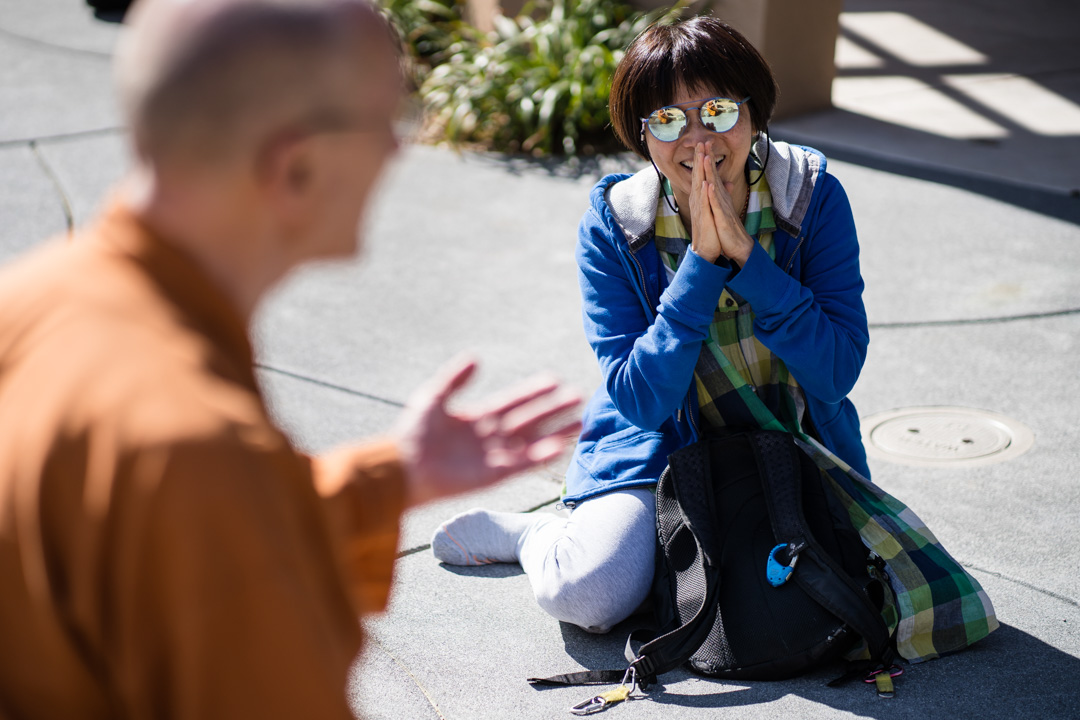 Mimi asking questions of Luang Por.